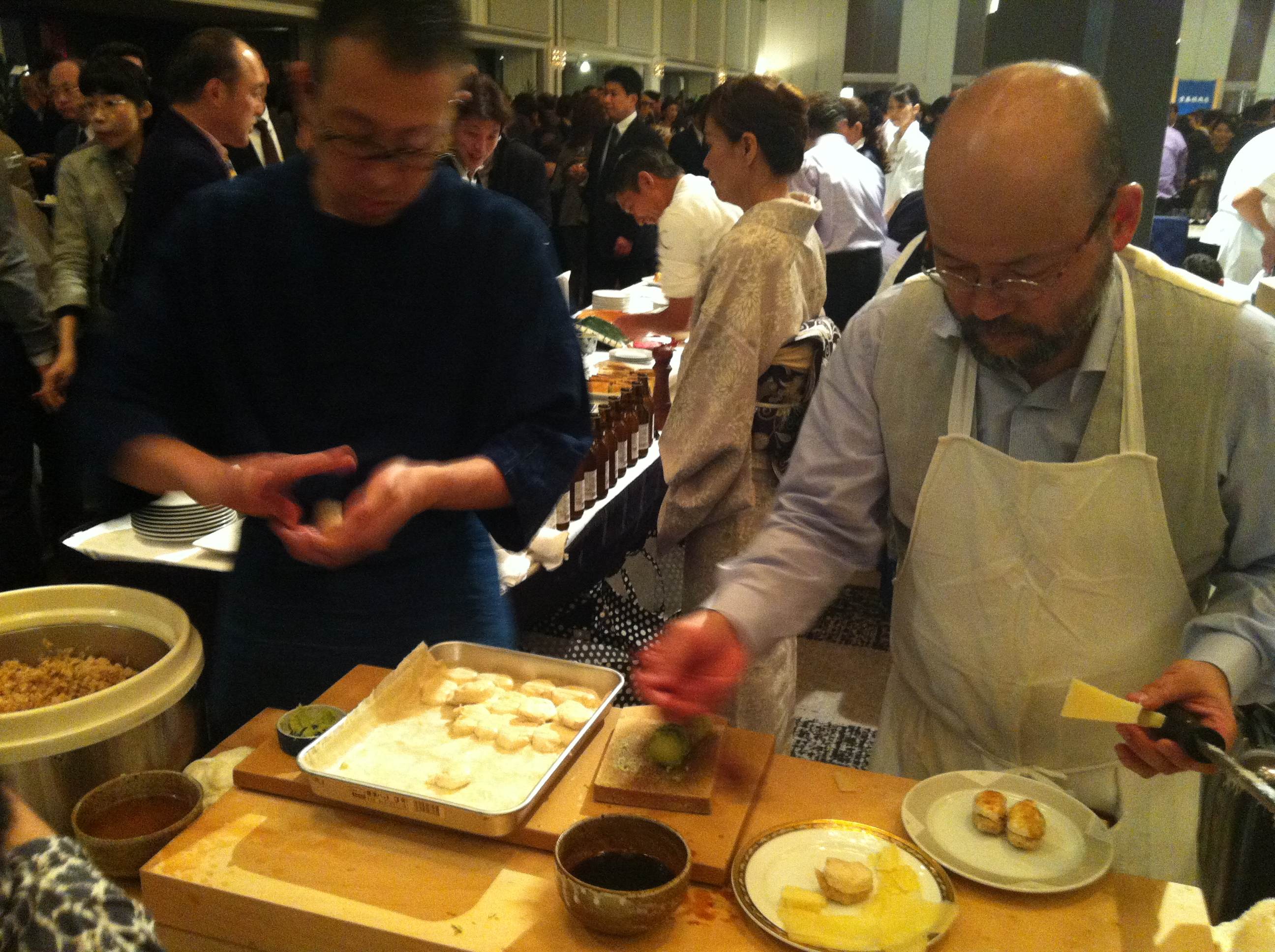 吉田全作さんは、ひさ田さんとコラボで、漬けのモッツァレラにぎり。チーズを削ってくださる姿がすてき。